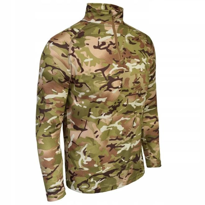 Блузата е в камуфлажен десен BTP (British Terrain Pattern) – универсален британски камуфлаж, който се адаптира към разнообразни терени. На десния маншет е разположено дискретно лого Kombat Tactical, което подчертава професионалния характер на модела.